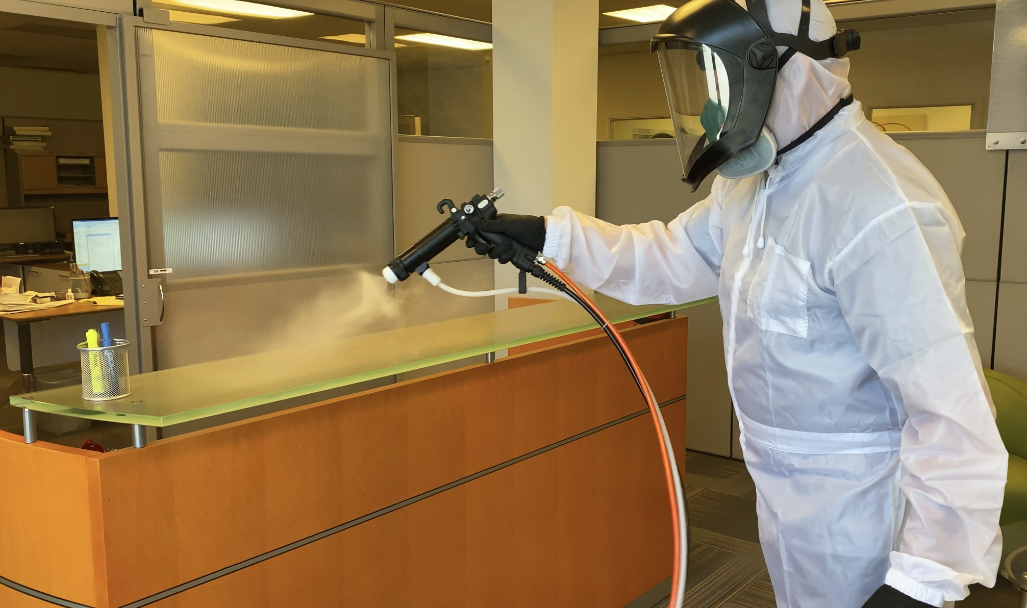 Our team together has over 23 years experience in the cleaning industry which includes toxic mold remediation, flood damage restoration, biohazard cleaning and are fully trained, capable, and experienced to handle the task of disinfecting and sanitizing small, medium, large commercial and residential customers. Our team of experts, when needed, wear full body bio-hazard suits, gloves, respirators, and only use EPA recommended medical-grade disinfectants to sanitize all affected areas according to the Centers for Disease Control and Prevention guidelines. In addition, we may combine the use of UV lights, Ozone Air Cleaners, and HEPA air filtration systems.